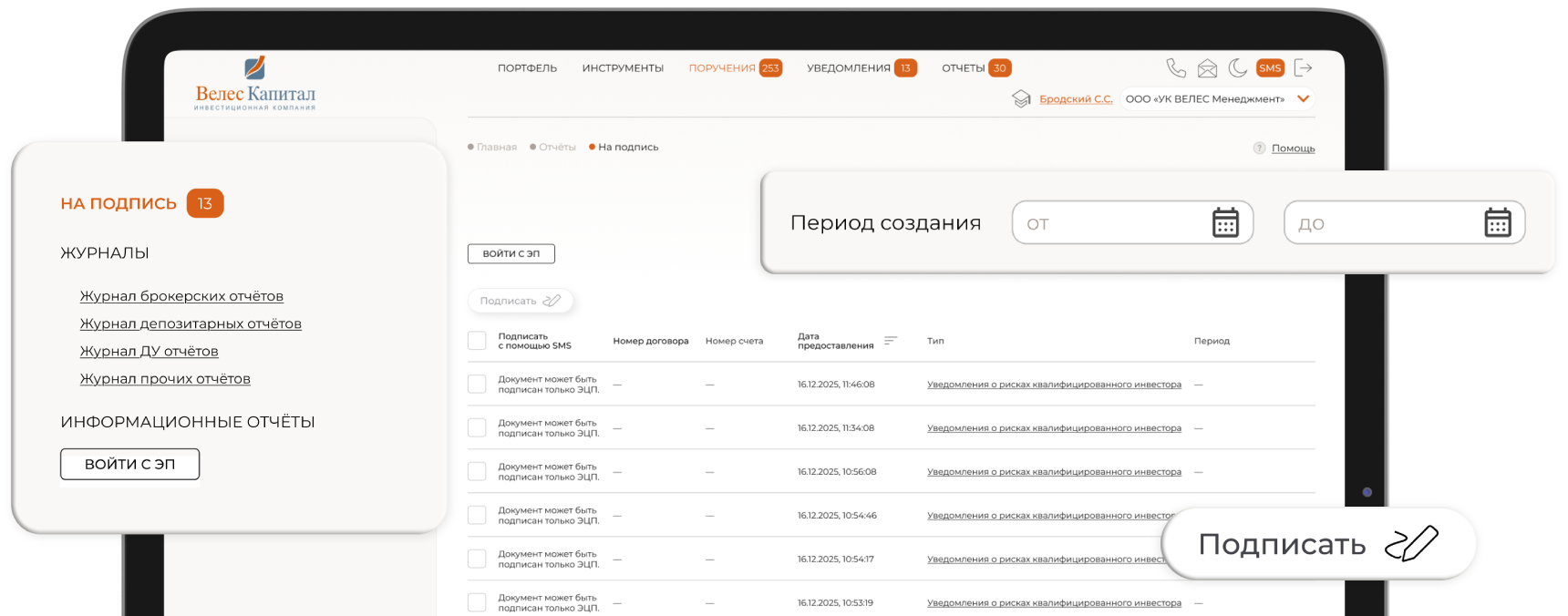 Модернизированный функционал поручений брокеру